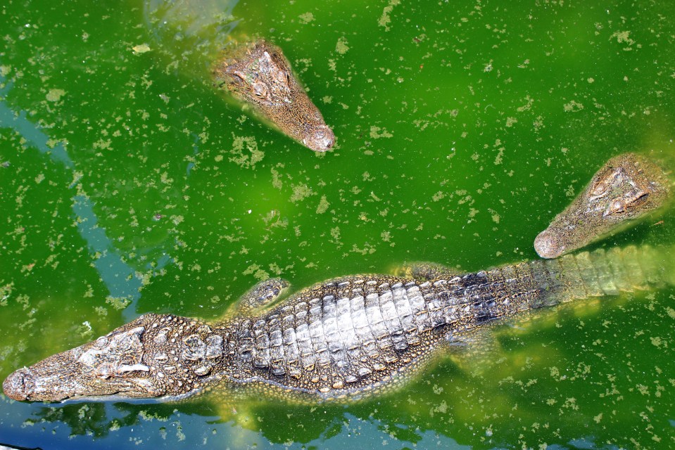 A crocodile zoo Lucky took me to. While there, some German tourists fed a live duck to these hungry reptiles.